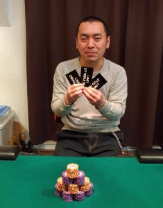 TADAさんは2-7のNO1vsNO2がぶつかり、ショートスタックとなり、3位で終了。